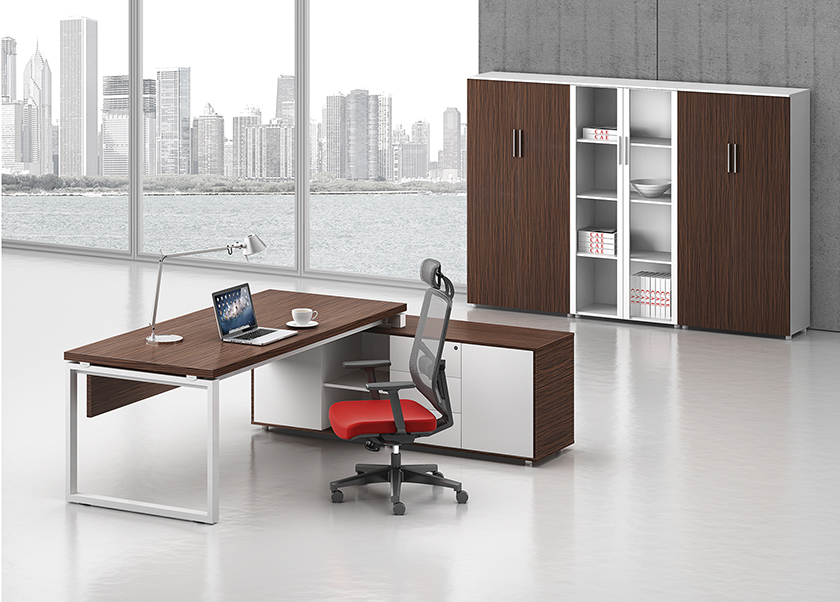 凯撒系列,源自德国的设计风格,糅合木的柔美与刚强的特质,深褐色的睿智理性与白色的纯净空白带来强烈的视觉对比。桌脚部位采用白漆方框金属支撑架,或是装饰或是必须,恰到好处地表现凯撒的艺术姿态。如此,简练高雅的设计,体现出东方华奥现代办公打造的高品位、个性化的办公方式。