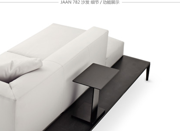 现代世界性的优雅生活方式。沙发的柔软可以使你舒适的陷在沙发里,满足了你对沙发安逸的想象。精致的框架在黑色的哑光漆作用下显得格外清秀。同时,为Jaan Living的宽敞的软垫搭配也做好了准备舞台。别致的,诱人的,与此同时,皮革的随意外观,与室内的灯光填充相得益彰。玻璃板或马鞍皮革的木板,对于日常小憩或者闲暇的阅读提供了非常方便的场所。Jaan的整体结构也提供了更大的座位空间,最吸引人的地方在于,两种结构都可以很从容的组合起来。对于新的几何图形和场所,适合于个人偏好和摆设吗。很自然的优雅。