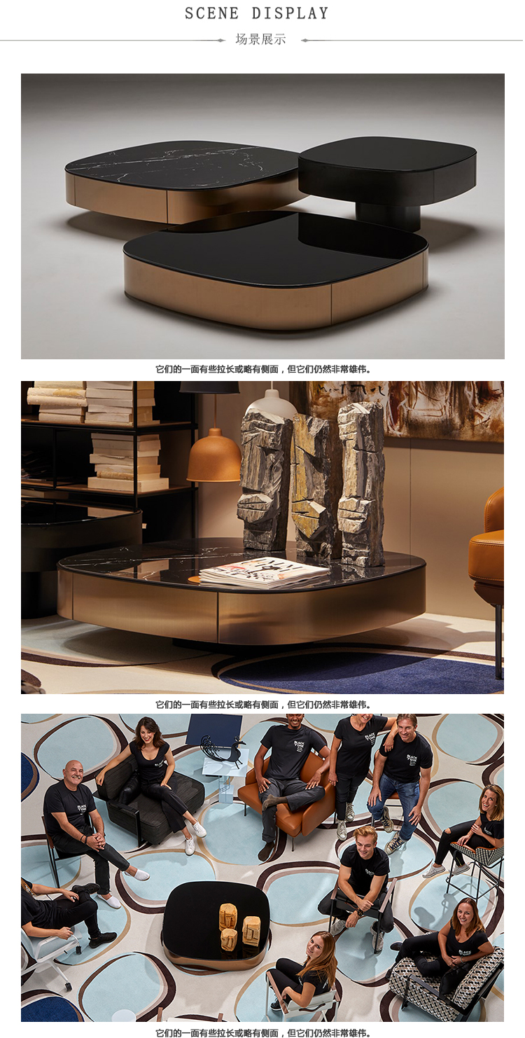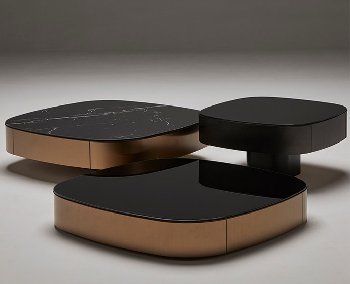该系列将非凡材料结合在一个既不是圆形也不是方形的辅助桌子中; 它们的一面有些拉长或略有侧面,但它们仍然非常雄伟。克莱斯勒系列有大理石台面,漆面玻璃,木材,皮革和其他材料; 所有都通过迷人的金属饰边增强。附加的不锈钢周边有以下色度范围:青铜色,锡色或黑色。