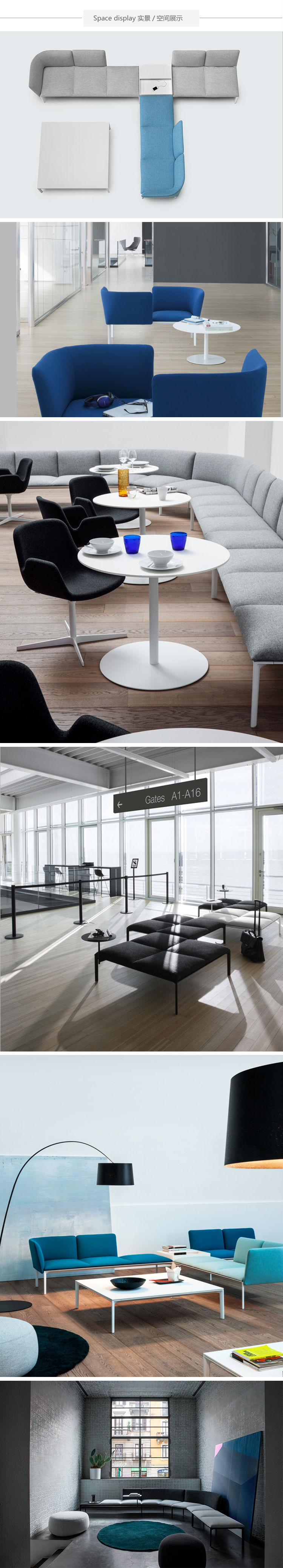 由三个字母和创造力形成,具有多功能性和灵活性,从安排,分离,改变中获得乐趣,无论是餐厅的休息区还是候车室,都是一种创新方式的完美综合,它可以感知室内模块化系统,并配备不同高度的小桌子。在一个数不清的组合中,很好地满足了当代工作环境和空间共享的需要。