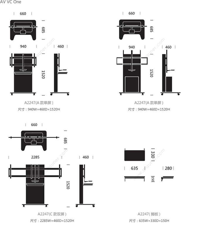AV VC One 系列尺寸/示意图