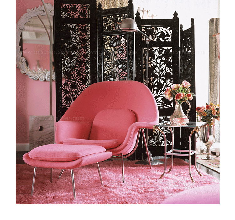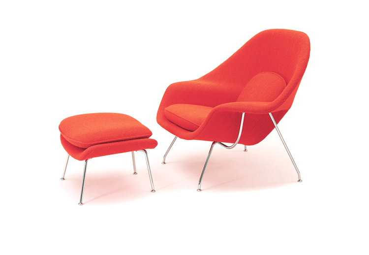 Womb Chair 的基本构造是由抛光镀铬或雾面钢管底座,以一体成型的泡棉包覆框架所组成。 Eero Saarinen 设计这张椅子挑战了一般世俗的规则,打破窠臼,树立了新的现代设计和舒适的标准,充分显示他的高超才华。
