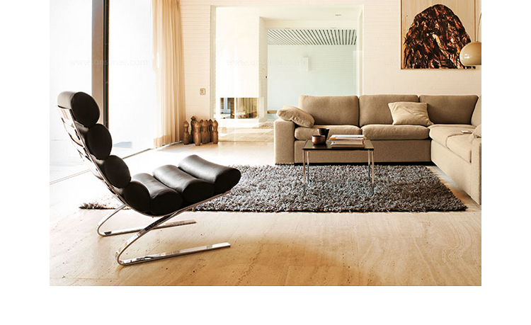 Reinhold Adolf & Hans Jurgen Schropfer为德国著名家具公司Cor设计了一款名为鼻窦系列的家具,这系列家具包括Sinus Lounge Chair(鼻窦躺椅)、Sinus Lounge Ottoman(鼻窦休闲脚踏)及其组合Sinus Lounge Chair and Ottoman(鼻窦躺椅&脚踏)。躺椅造型就像一只只圆形的鼻窦组合在一起,材质是不锈钢框架椅身、进口皮革扪面、软包内部填充进口海绵,躺着上面非常的抒情惬意。