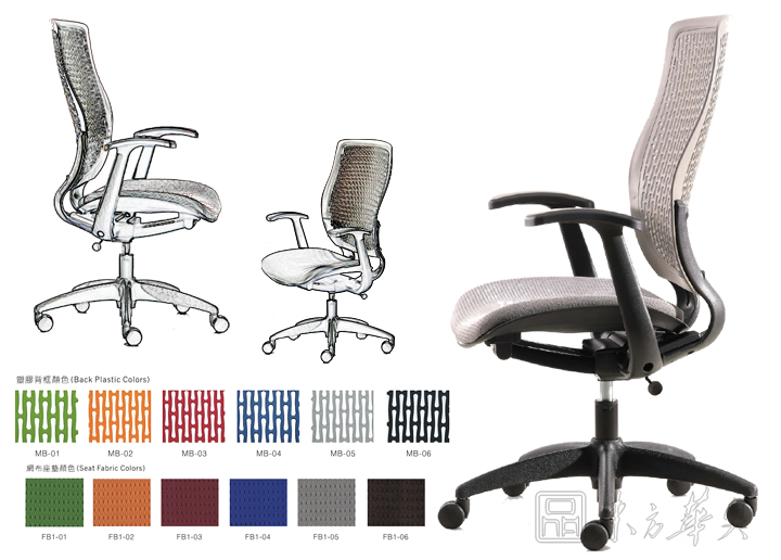 椅背:采用高张力网布,具有透气性强、弹力强及不助燃等特点。
