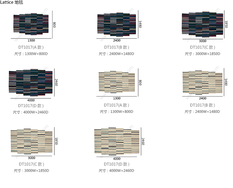 Lattice 地毯 系列尺寸/示意图