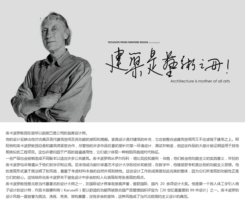 M5是库卡波罗教授2000年的作品,全新款型的设计改进,使这款产品更轻便并富有装饰性。 M5可以叠摞放置,结构简洁而不失优雅。通过改变靠背部分的颜色与印刷图案,可实现不同的装饰性效果。