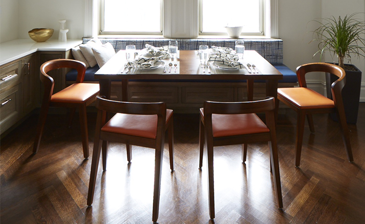 Elegant massive wooden table with an unique contemporary design,rounded edges at the table top and refined table legs.