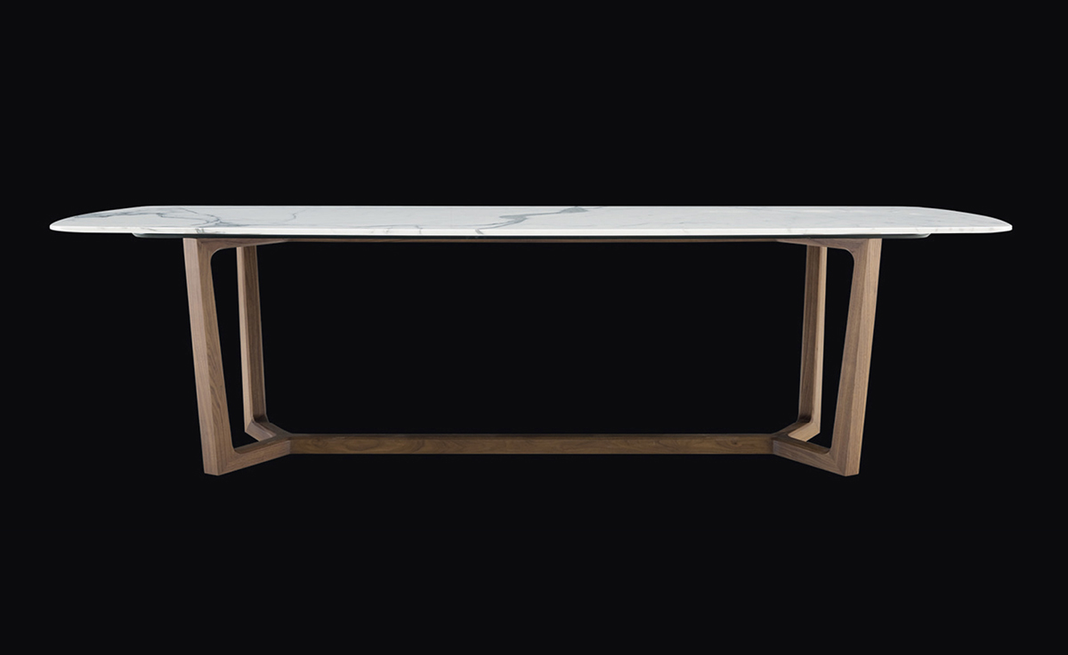 由Emmanuel Gallina设计的Concorde Table(协和式飞机桌)风格简约,通过简单的形式充分发挥了木料的自然特征。朴素优雅是Concorde长桌的独特之处,也是设计师的风格表现。长桌采用横纹核桃木和施佩萨特橡木,桌面有四种抛光和三种磨光大理石可供选择。