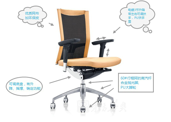 B:合金抛光脚,PU大脚轮,60#行程阿的高汽杆,汽杆上下伸缩12万次不漏气。