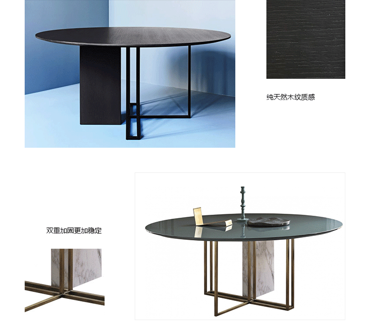 光结构化在黑色金属基地或古铜色的黄铜完成匹配固体体积覆盖着各种大理石、木材或漆完成,自由结合不同形状的顶部给生命一个相互作用的固体和空洞。