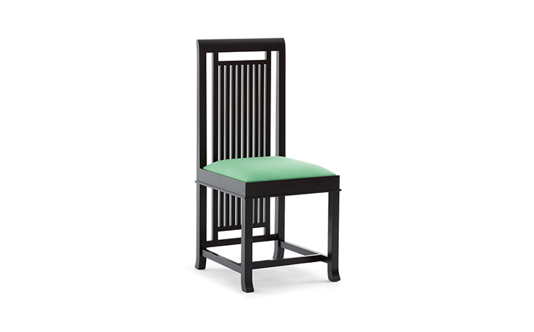 靠背椅,采用天然樱桃木、樱桃木色或黑色胡桃木制造。座垫采用聚氨酯海绵填充,皮革及布艺面料软包。