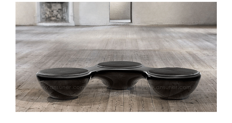 瑞典设计师Jangir Maddadi设计的这款联合座凳系列,可分为双座,三座及多坐,我司主要推出两座及三座,分别为:Union 2-seater Bench(联合双座凳)和Union 3-seater Bench(联合三座凳)。大家都知道,一般的座椅都是可以一个人或多个人一起坐,相互之间都不会受到影响。而这款连体休闲座椅却不同,外形很像一只陀螺,使用起来很像一个不倒翁,上面最多可以坐四个人。但是设计师并没有将这样的座椅让它们独立出现,而是用三张同样的座椅链接在一起,并且形成一个90度的直角,这样无论是陀螺还是不倒翁,都会很稳定的供给我们使用。当然,理论上来说,生产这种椅子,不仅可以做3件连体,4个,6个……都可以做。只是要考虑运输问题,或许3个是最完美的。这款连体休闲座椅不仅外形很优秀,而且还更加实用,使坐在上面的人有更多的空间,而且还可以保持面对面的互动。