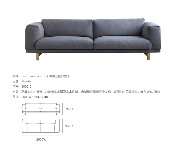 挪威设计事务所Anderssen & Voll为丹麦家具品牌Muuto设计了“Rest”沙发系列。这组家具是在挪威西海岸制作的,包括三人沙发、双人沙发和脚踏——每个设计都带有内嵌式靠垫,表达了设计者对空气美学的理解。“我们希望通过一种轻质诱人的外观创造一个有机的,以人为本的沙发系列,不会在舒适度上作出妥协。”Anderssen & Voll解释说。“沙发坐垫上的水平分割线十分重要,它能在家具底部增加额外的舒适度”。
