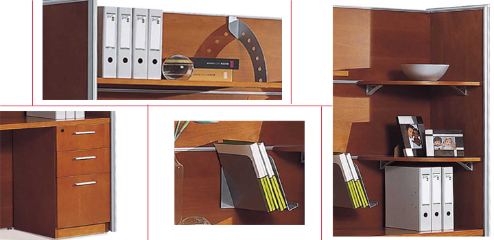 ※ 上图文件柜的各种功能展示图,分别有落地柜和功能挂槽,挂式文件夹,角落弧形书架 ,移动层板件等等系列功能件!