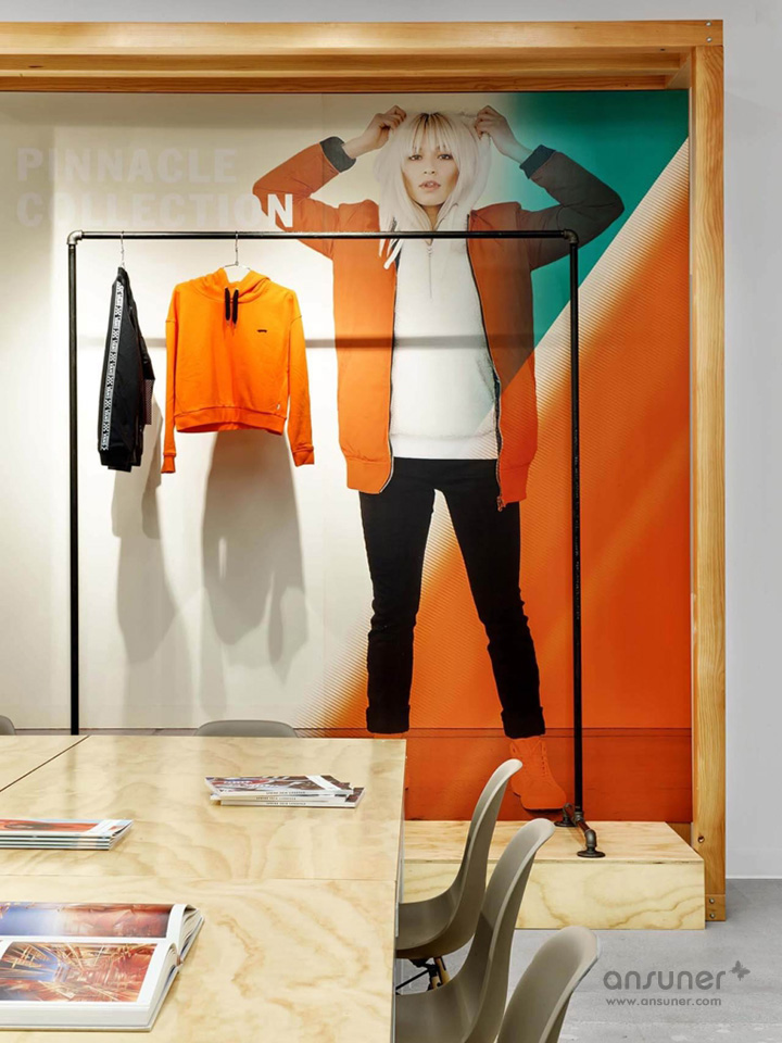 在这样一个团队作战的工作环境中,员工依旧拥有大量的个人空间去展示新产品、纺织面料和制作模型。独立的工作社区也让位给更多的共享空间,共享的专注工作空间、多样的团队协作区、一对一的谈话间等,多元化的设计让任何一种需求都可在这里自由的进行。